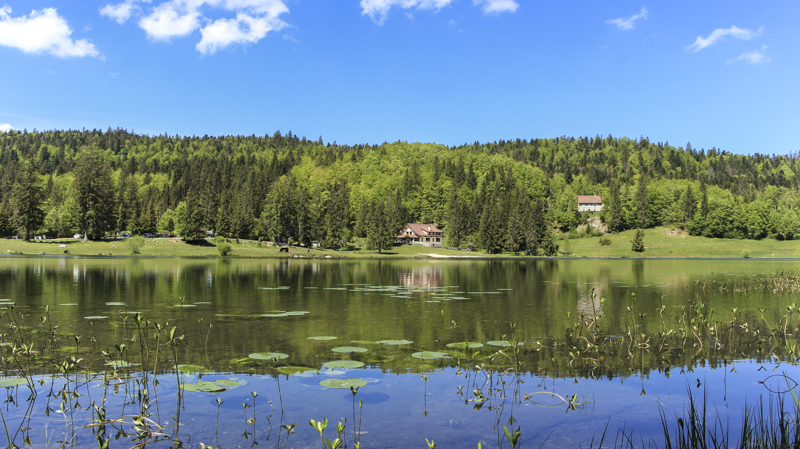 Et l’aventure commence au lac Genin, un spot naturel incontournable du massif jurassien. A 830 mètres d’altitude, le lac se love dans une combe naturelle, entourée d’une forêt de sapins qui donnent à l’eau sa couleur vert émeraude. Pas étonnant qu’on le surnomme « le petit Canada du Haut-Bugey ». C’est aussi une base multi-loisirs, où l’on peut pratiquer des activités aussi variées que la baignade, la pêche, le VTT, la randonnée… et même le patin à glace ou la plongée sous glace en hiver. Un écrin naturel idéal pour notre week-end en famille !