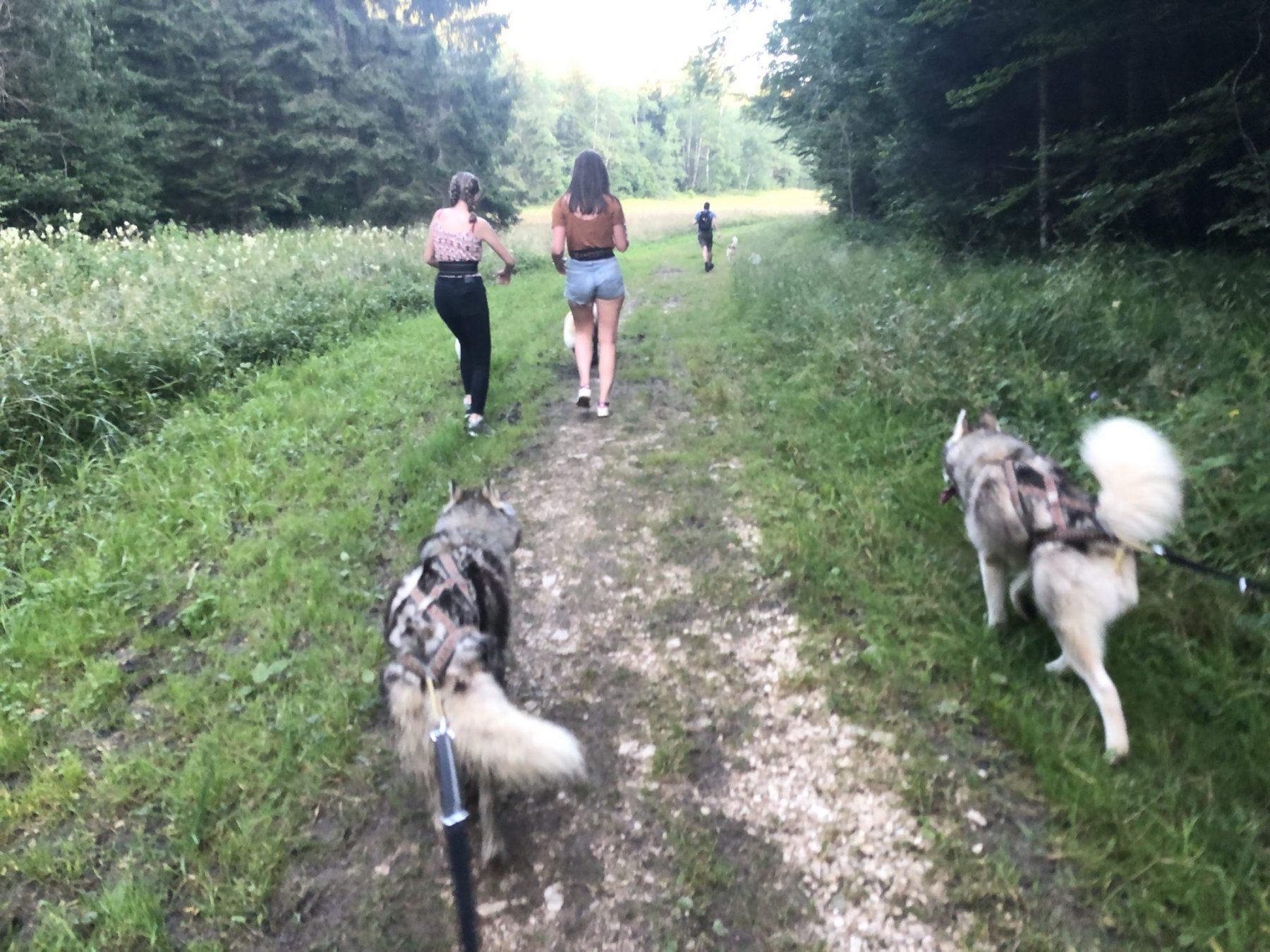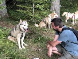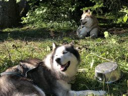 C’est ici que nous attendait la dernière aventure de ce week-end. Une balade cani-rando avec Nordic Indiana. Jérémie et sa meute de chiens sibériens proposent régulièrement cette activité au départ du lac. Après une première présentation de nos compagnons de rando, chacun est harnaché à un chien et nous partons en vadrouille. A six pattes, la balade paraît plus facile, même si elle est bien ralentie par les pauses caresses.
